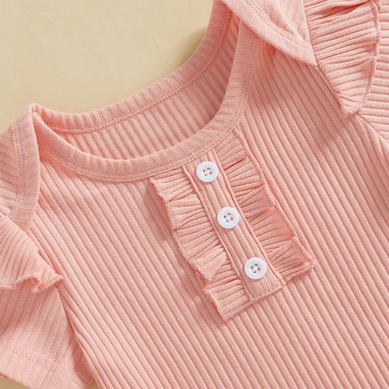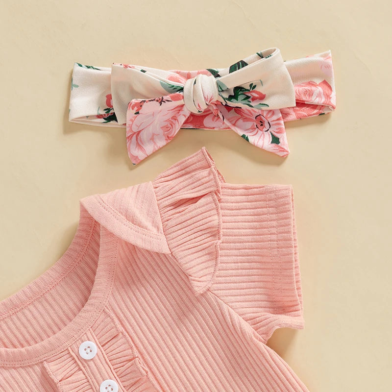 Toddler Girls 3 Piece Outfit Set Ruffle Sleeve Bodysuit Floral Bell Bottom Pants Headband Set for Baby Girl